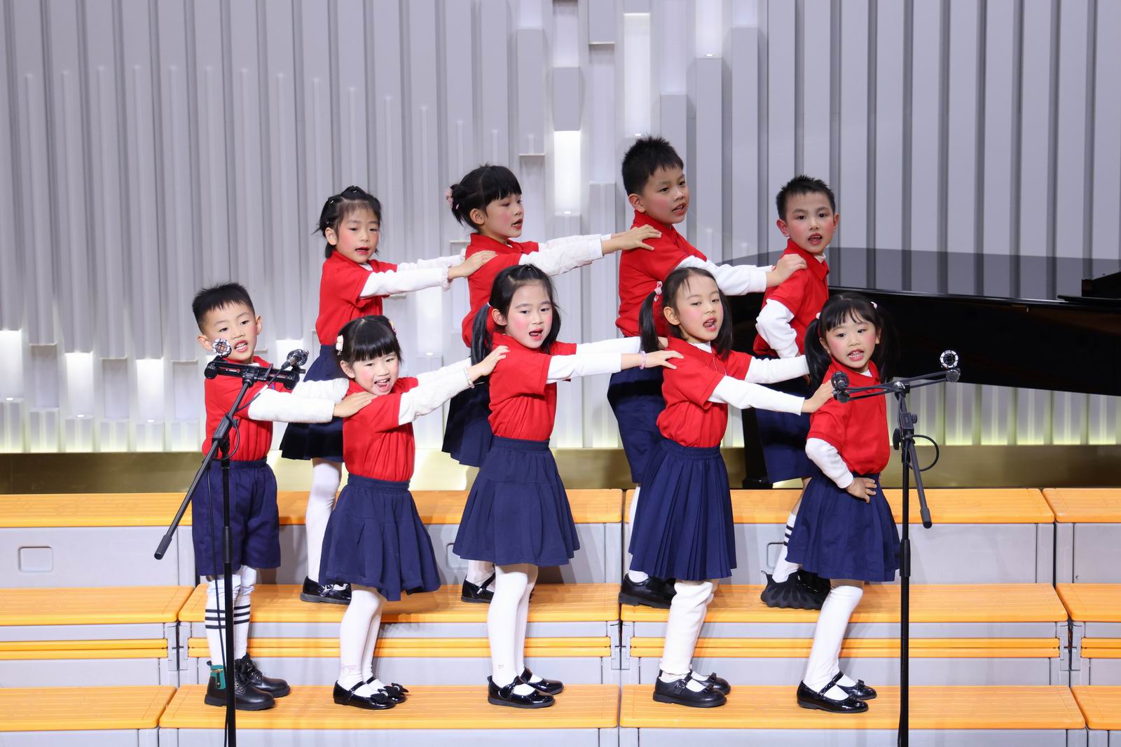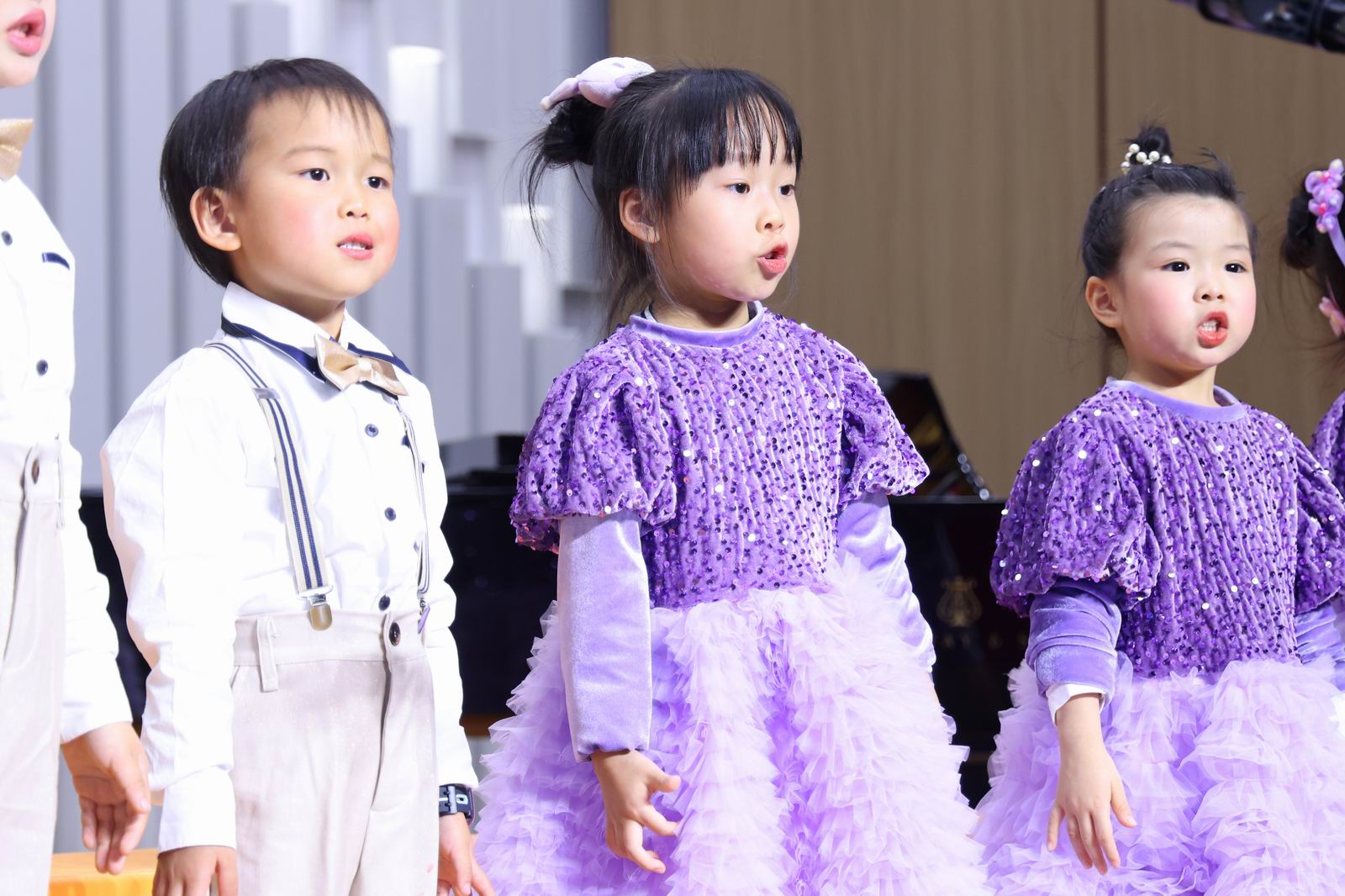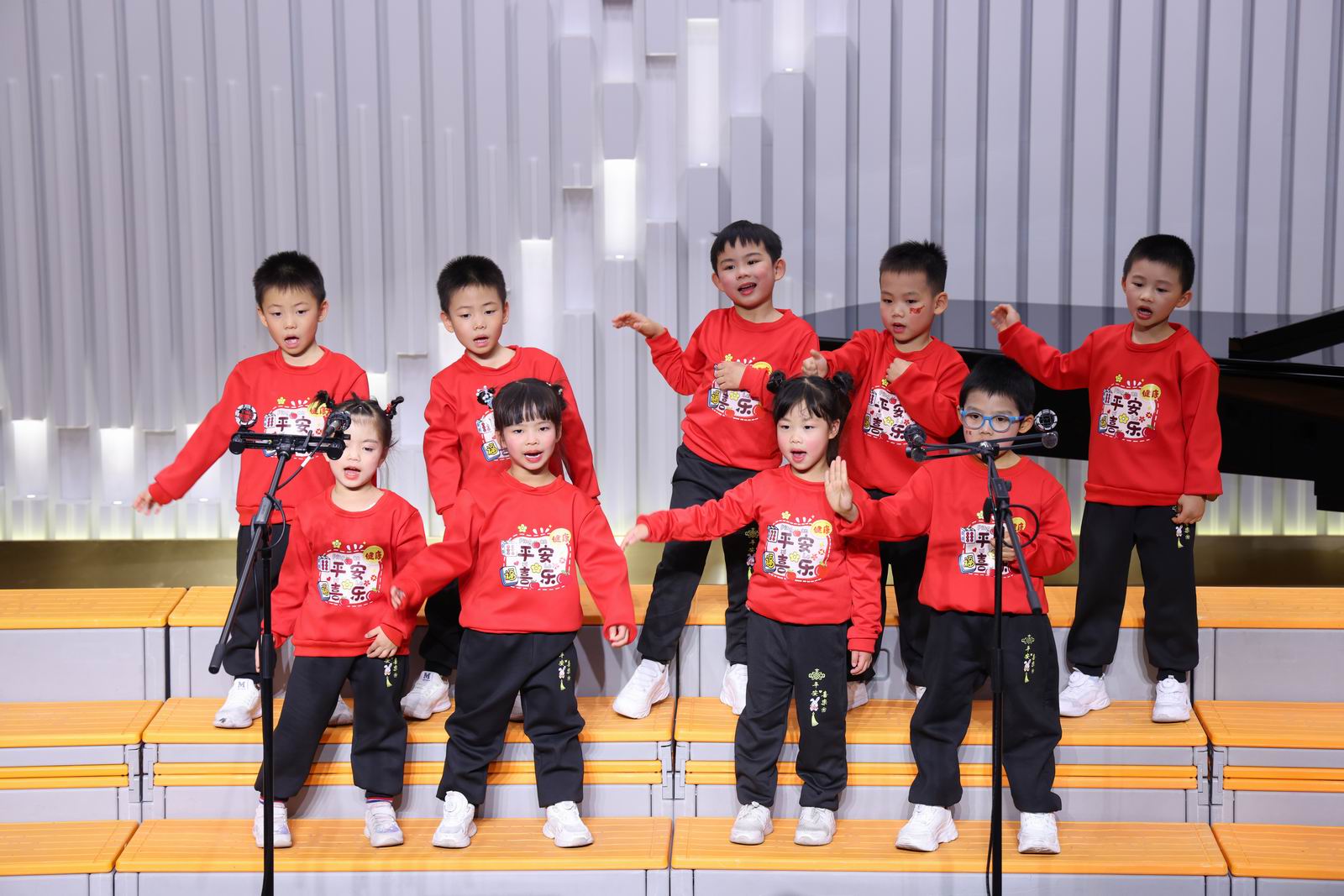 演唱曲目:《两只老虎》《唱支欢乐歌》《红红的太阳》