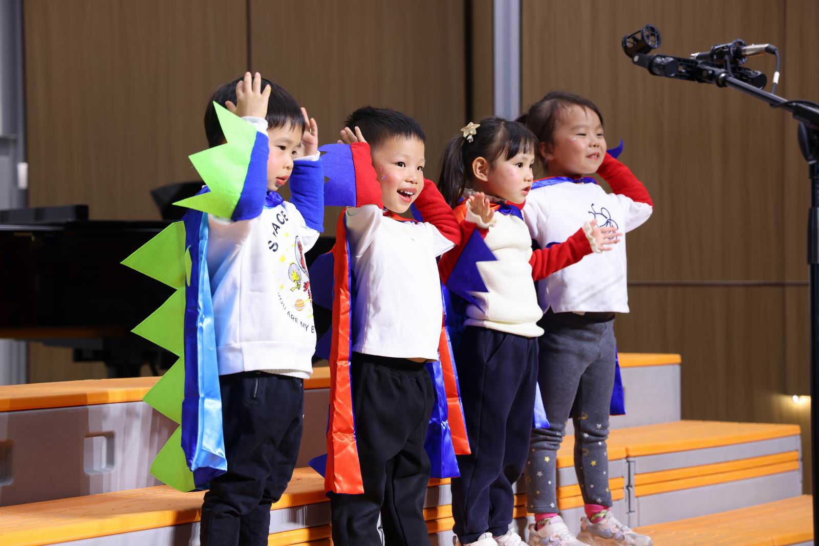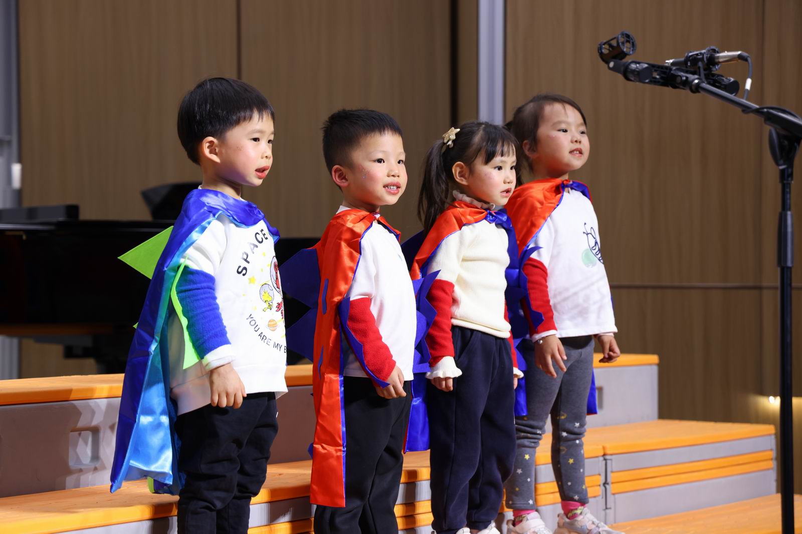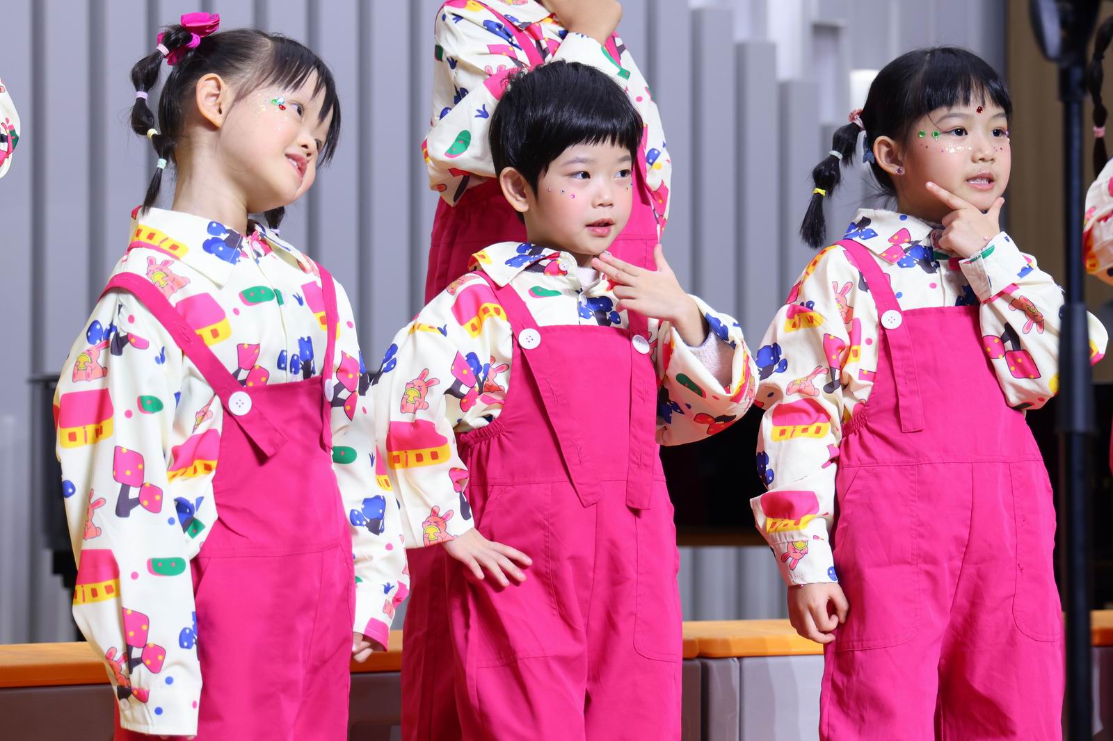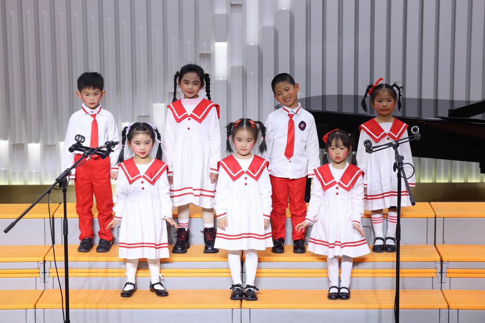 演唱曲目:《两只老虎》《唱支欢乐歌》《红红的太阳》