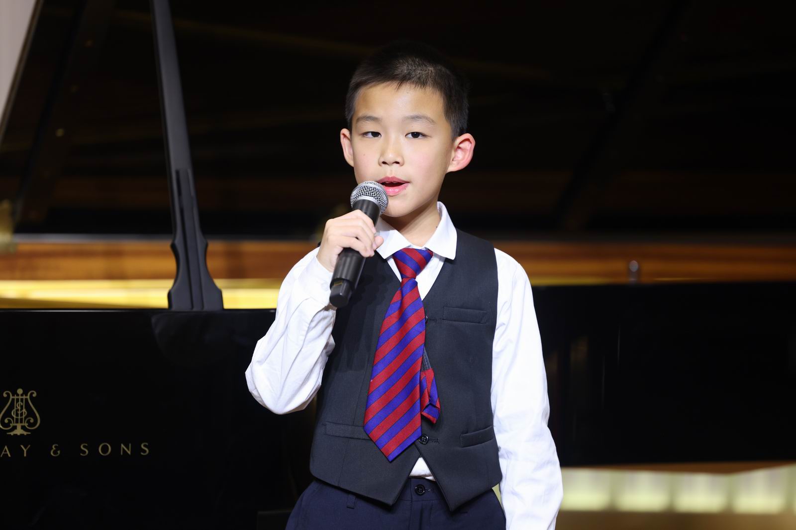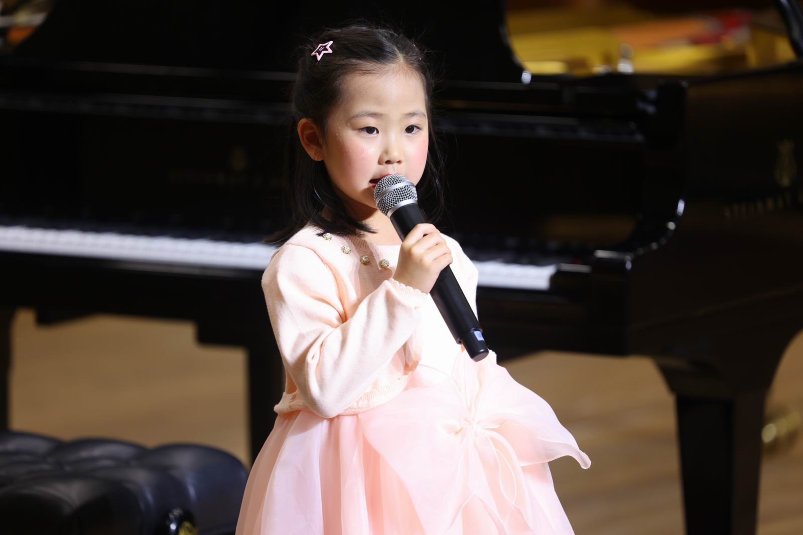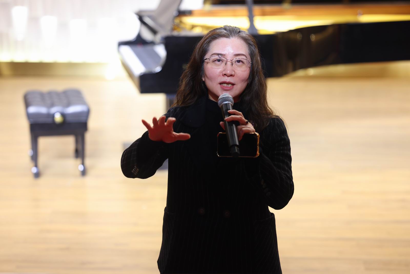 汇演进入尾声,艺铭文化创始人及教学总监常清老师上台致词。她首先对本次汇演进行了简短的总结,表扬了参演学员们在舞台上的精彩演绎,特别强调了孩子们在音乐学习技能上的不懈努力与显著进步。随后,她现场与家长们进行了一次特别的气息与节拍控制的练习。通过这个互动,常清老师希望家长们都能更加深刻地理解音乐,并且认识到孩子们在音乐上的学习之路虽不易,但每一步都充满了成长的足迹,因此需要家长们给予更多的鼓励与不懈的支持。紧接着,常清老师提到,在对待孩子们音乐技能的培训上面,也是要坚持的,只要坚持下去,一定能看到他们长足的进步和更加耀眼的舞台表现。同时,她也对学员们寄语厚望,希望他们能够继续在音乐的道路上坚定前行,技艺上日益精进,永远保持对音乐的热爱和学习,相信未来的他们定能在音乐的殿堂里绽放更加璀璨的光芒。
