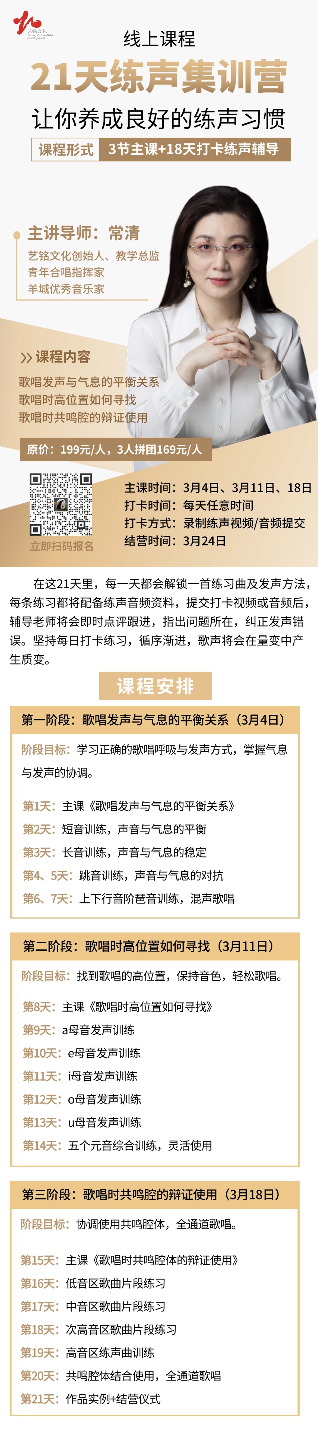 由艺铭文化全力打造的21天练声集训营2024版年后激情来袭!全新调整的开课时间,给与学员更充足的课前预备调整,务求以最佳状态严阵以待。